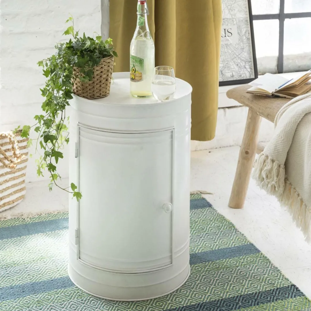Le petit mot de Valérie, fondatrice : De plus en plus, on se revendique comme étant une marque qui propose des meubles originaux, qu’on ne retrouve pas chez les copains. Alors quoi de plus insolite qu’une table de chevet en bidon 100% métal ?