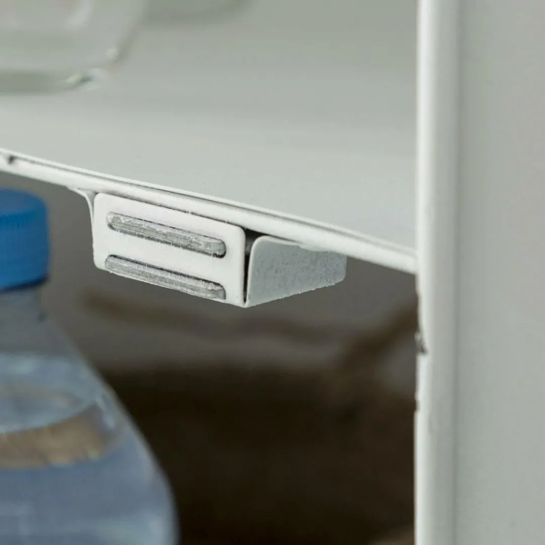 Conçue en métal blanc, ses dimensions de 40 cm de largeur et de 60 cm de hauteur, en font un meuble qui prendra peu de place et qui ira aussi bien dans des petits que dans des grands espaces.