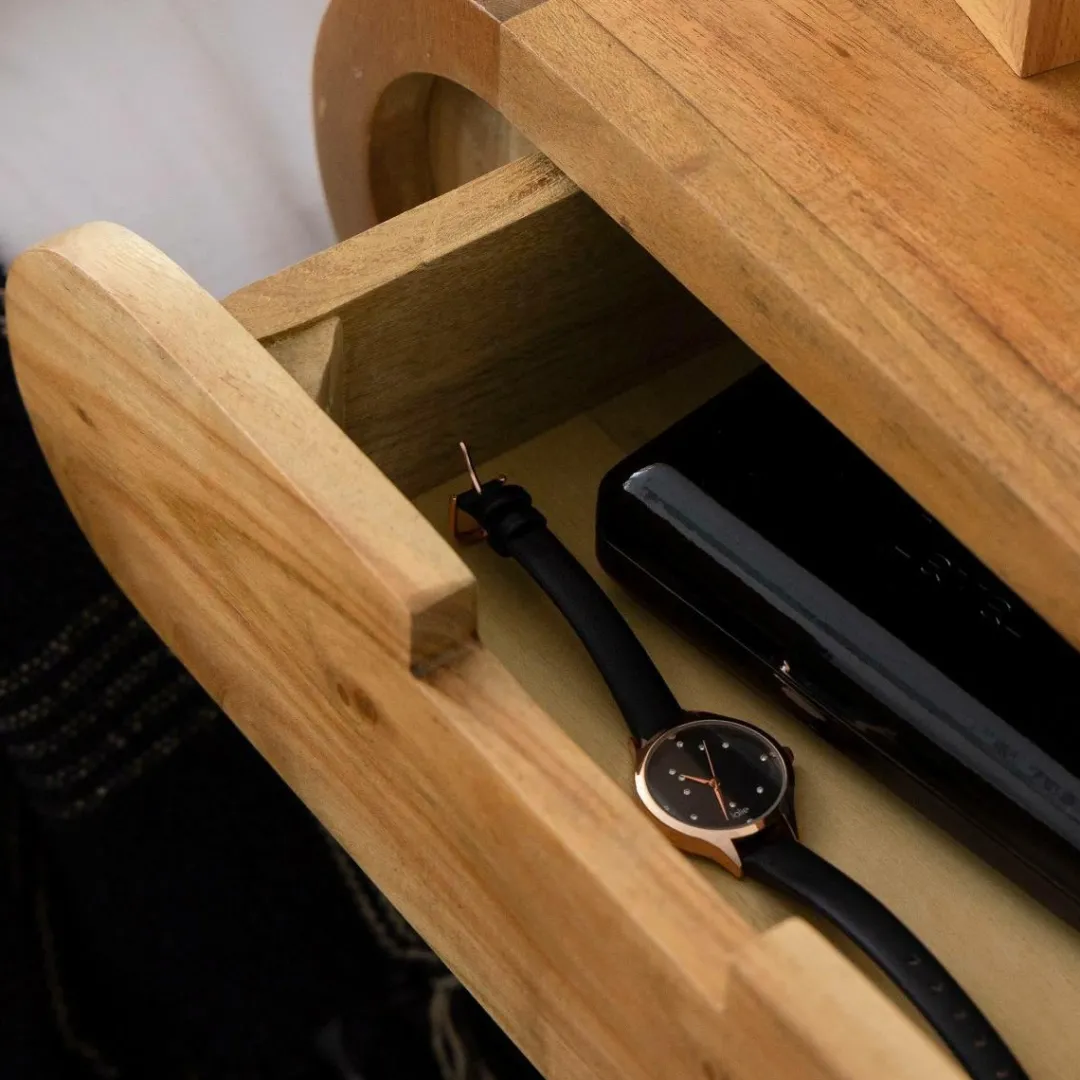 Son tiroir intégré permet de garder vos objets du quotidien à portée de main tout en les dissimulant avec élégance. Idéale comme table de chevet dans une chambre, elle peut également faire office de vide-poche dans une entrée ou d’appoint décoratif dans un coin lecture.