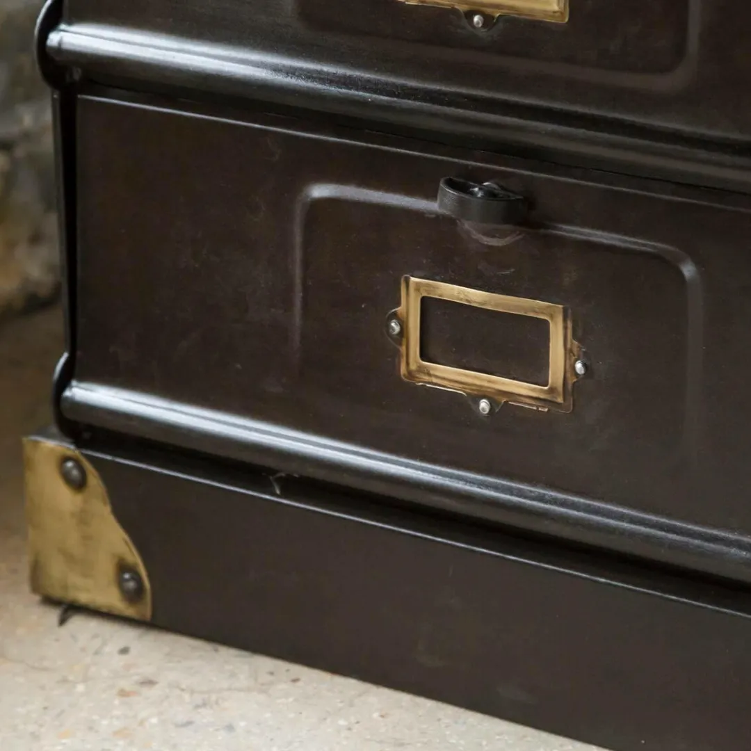 D’une hauteur de 1 mètre, ce chiffonnier industriel de style vintage est composé de métal noir, avec finitions dorées. Son originalité réside dans le système d’ouverture à trappes et dans le design rétro. Ses 5 trappes vous offriront de nombreuses possibilités de rangements. Bouquins, classeurs, documents, ce chiffonnier industriel va vous simplifier la vie !