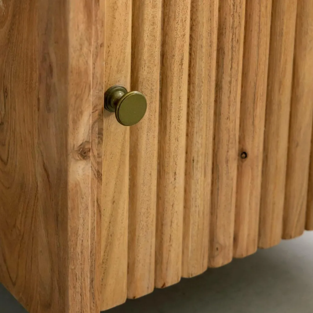 Cette colonne en bois d’acacia de la collection Emyr allie lignes douces et fonctionnalité, parfaite pour meubler un petit espace avec style. Son design aux angles arrondis adoucit la silhouette verticale du meuble, tout en mettant en valeur les nuances chaleureuses et le grain vivant du bois d’acacia massif. Un format compact qui maximise la capacité de rangement sans encombrer visuellement.