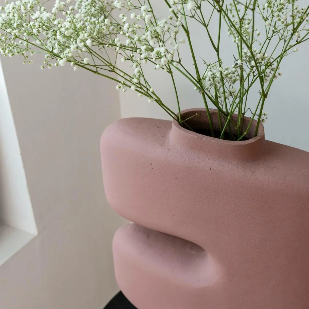 Laissez notre grand vase Cosmo en aluminium rose apporter un nouveau niveau de sophistication dans votre maison dès aujourd’hui !