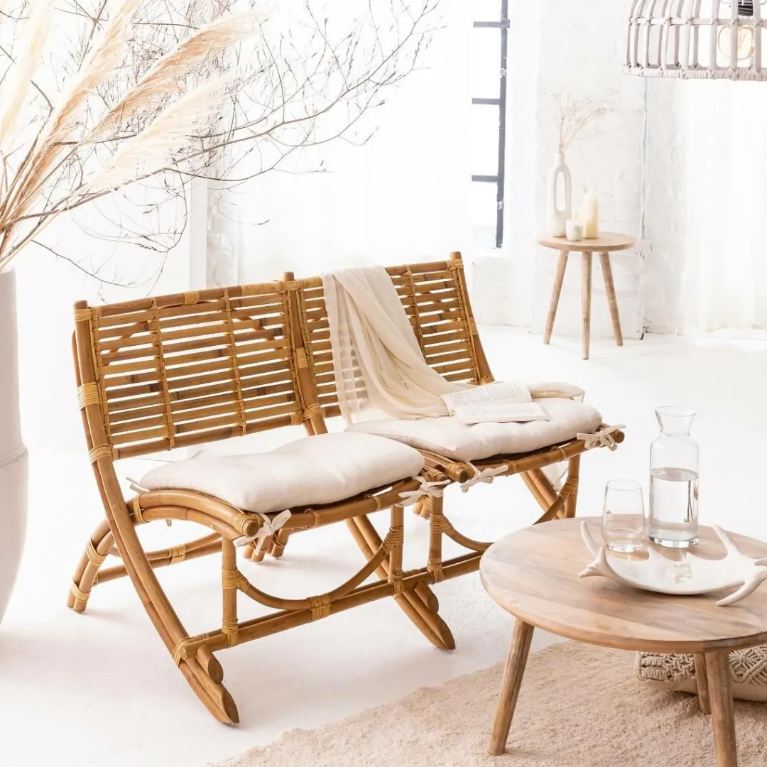 Découvrez le charme vintage et bohème du fauteuil 2 places Mayeul ! Cette pièce unique est fabriquée en rotin naturel, ce qui lui confère une touche à la fois classique et moderne.