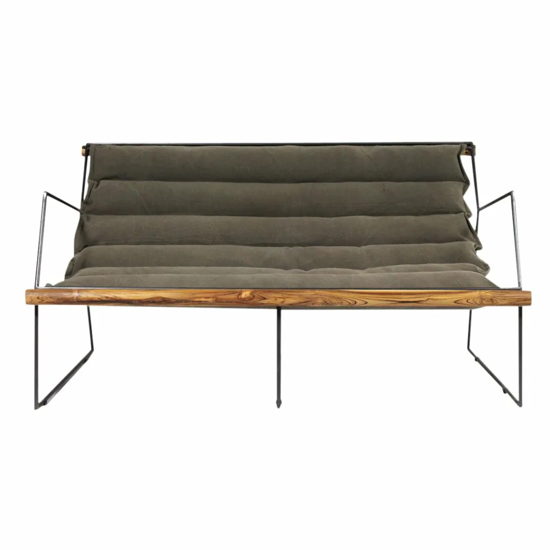 Vous vous y voyez déjà ? Rien de plus normal ! Ce fauteuil à l’assise suspendue est l’originalité incarnée ! Il met à contribution le bois, le tissu et le métal en s’offrant un design de style industriel. Il dispose d’une structure graphique et raffinée réalisée en métal qui accueille une assise profonde et suspendue en tissu kaki.