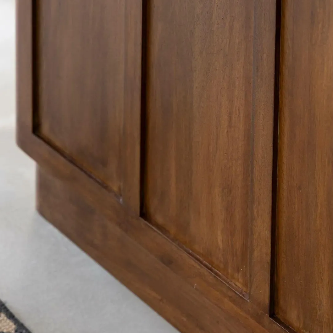 Ce meuble bar en bois de manguier massif séduit par son design chaleureux et son élégance rétro. Habillé d’un cannage sur la partie haute, il apporte une touche artisanale et légère qui contraste joliment avec la teinte profonde et chaleureuse du manguier.