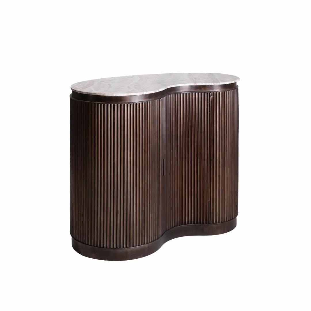 Fabriqué à partir d’une belle combinaison de métal brun et de marbre blanc, il offre l’équilibre parfait entre beauté et finesse. D’une hauteur de 100 cm, il offre un grand espace de rangement avec une largeur de 120 cm. Que vous receviez des invités ou que vous vous détendiez seul, ce meuble luxueux apportera une touche de sophistication à votre intérieur.