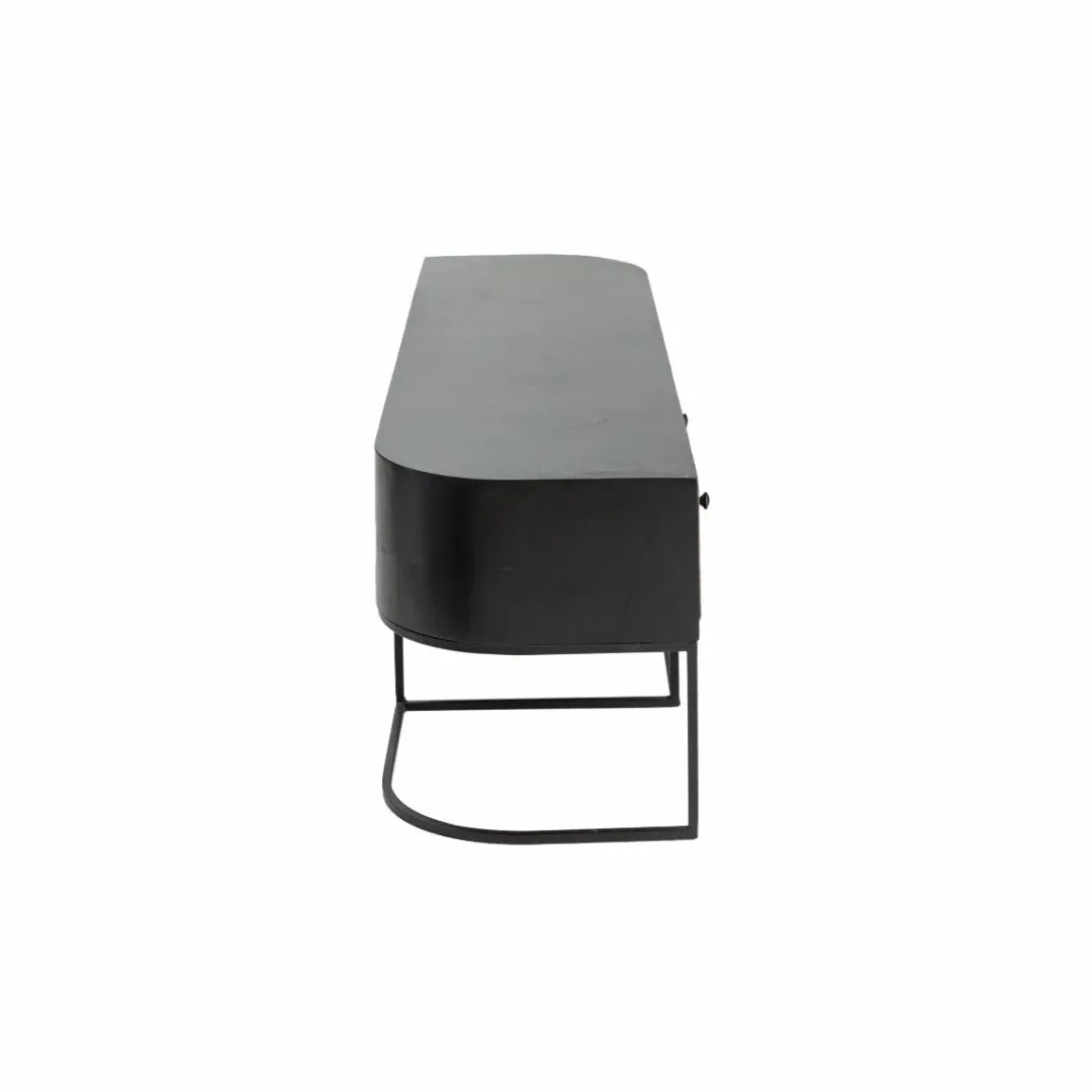 Son design est moderne mais intemporel, avec des courbes douces et un aspect chaleureux et authentique. Ce meuble comporte deux tiroirs et un compartiment ouvert, idéal pour ranger différents accessoires. Sa largeur généreuse de 160 cm lui donne une belle présence visuelle et une bonne stabilité, tandis que sa hauteur de 45 cm lui permet de s’adapter facilement aux espaces plus restreints.