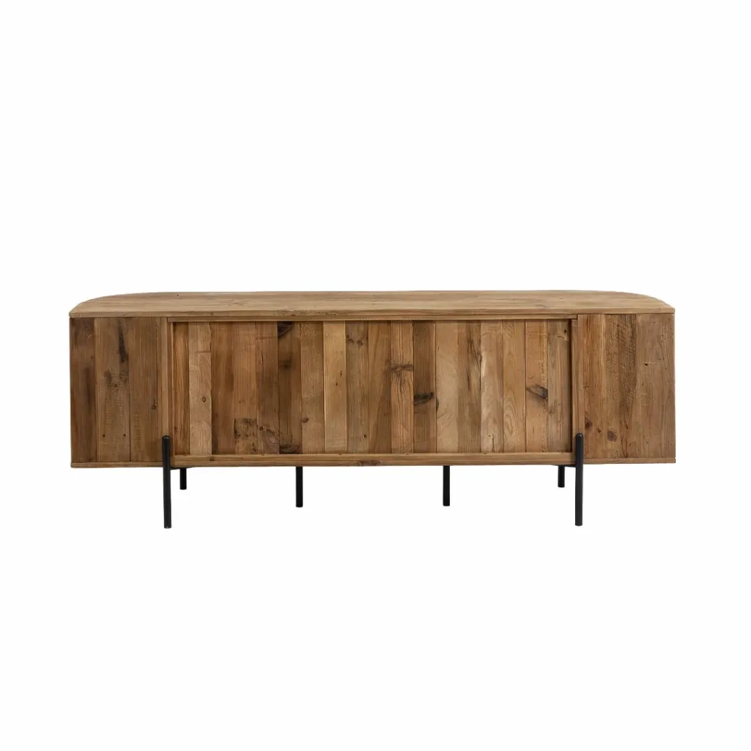 Issu de la collection Blaise, ce meuble TV en bois recyclé séduit par son design singulier, son charme authentique et la chaleur naturelle de sa matière. Conçu à partir de bois ancien soigneusement retravaillé, il conserve les marques du temps : veinures irrégulières, petites imperfections et nuances profondes qui rendent chaque meuble véritablement unique.