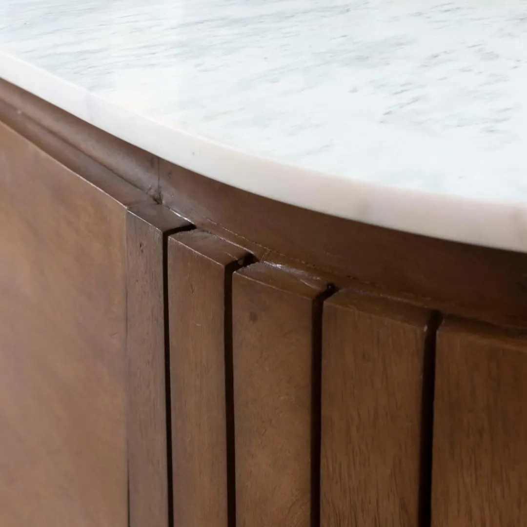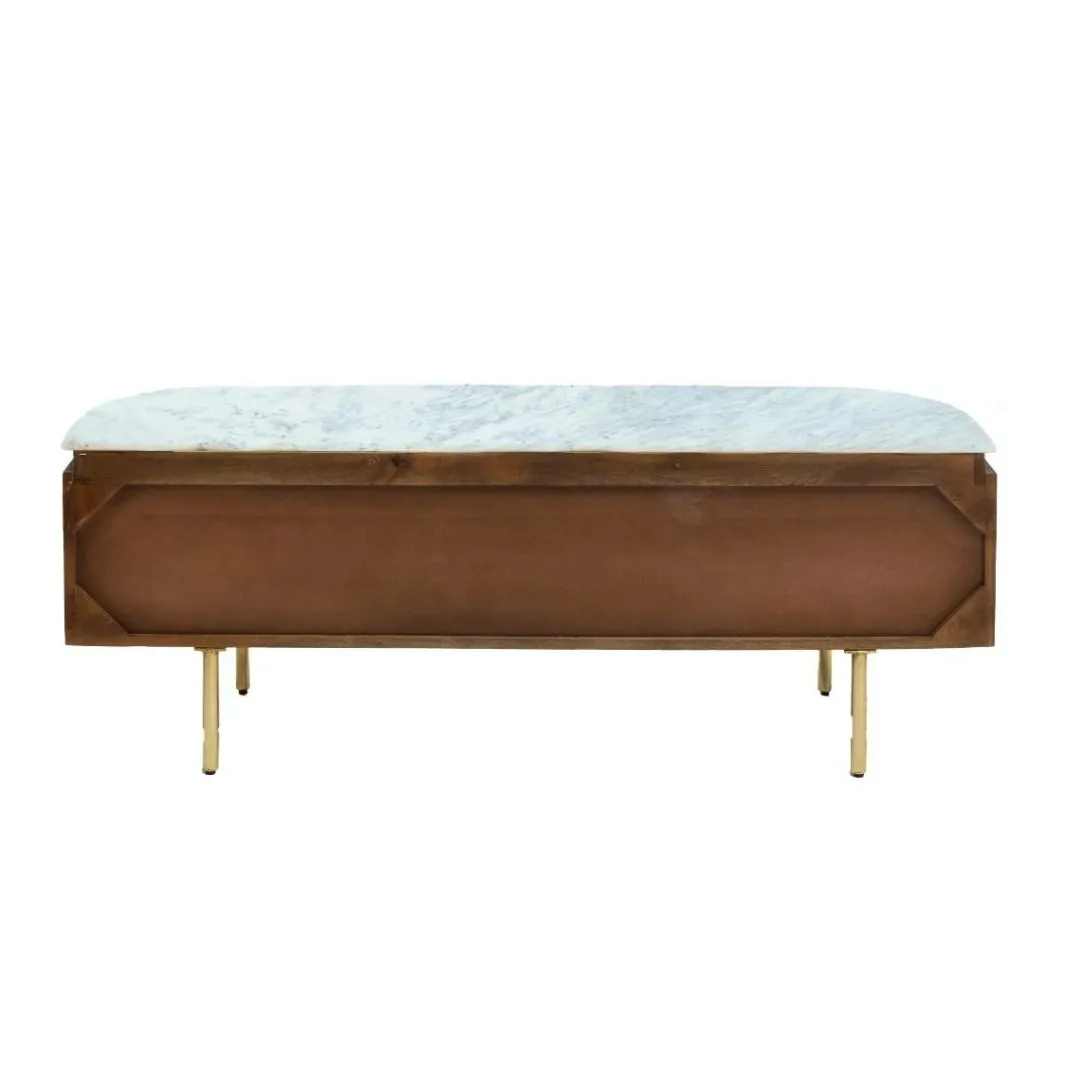 Voici le meuble TV Sienne – une merveille moderne conçue avec le luxe et la commodité en tête ! Cette superbe pièce a été fabriquée en bois de manguier, avec un superbe plateau en marbre blanc et des pieds en métal doré pour compléter le tout.