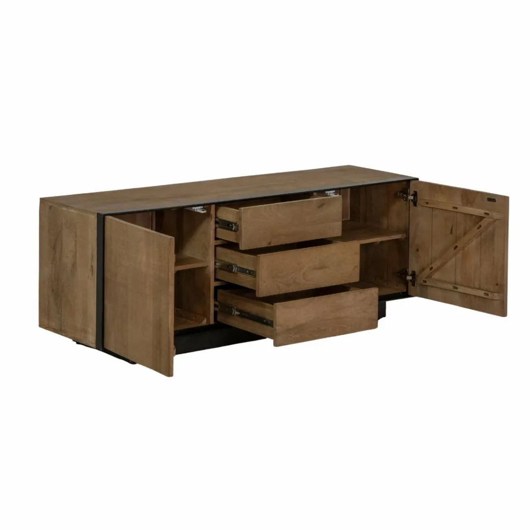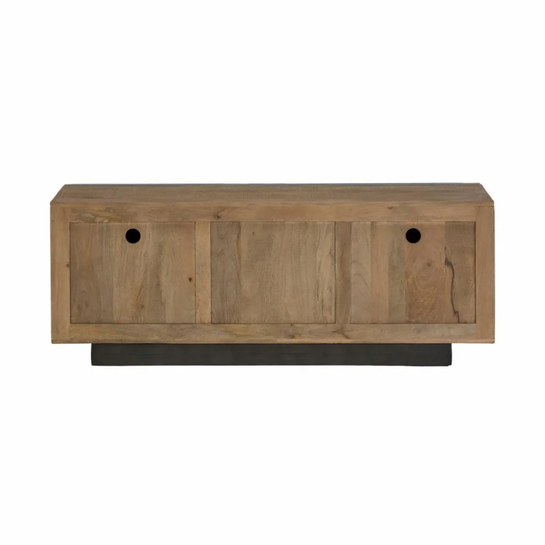 Faites place à l’authenticité avec le meuble TV en bois de manguier et métal de la collection Isil. Ce meuble allie la chaleur du bois massif à la robustesse du métal noir pour créer un style résolument industriel. Son design linéaire et équilibré s’adapte aussi bien à une décoration brute qu’à un intérieur plus contemporain. Le veinage du bois de manguier apporte du relief et du caractère, chaque pièce étant unique par sa teinte et ses motifs naturels.