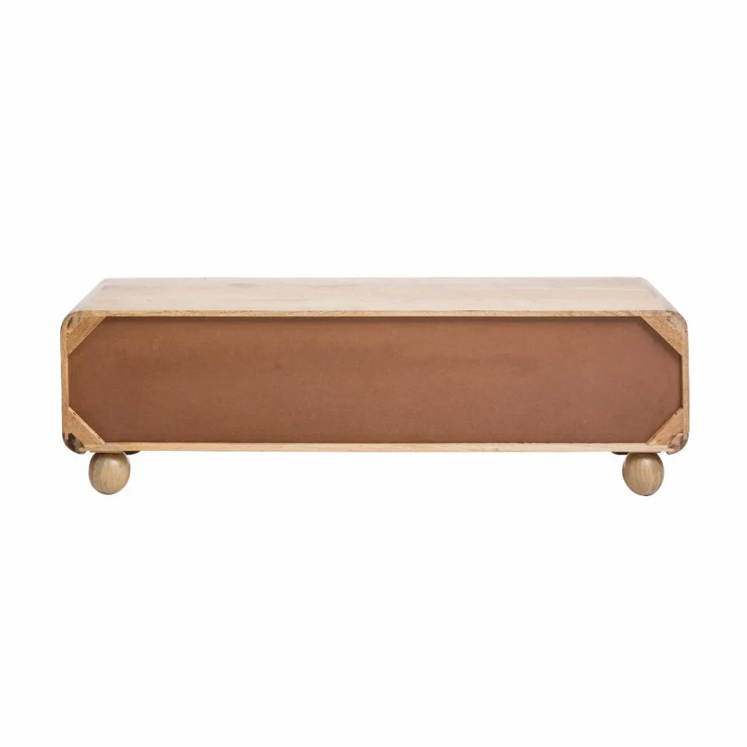 Nous comprenons l’importance de l’investissement que vous faites, alors soyez rassuré en sachant que cette étagère TV en bois est conçue pour durer. La couleur et la texture du bois se reflètent subtilement dans le matériau en bois de manguier ; chaque motif chaud et naturel est unique dans sa forme et son pigment, offrant la combinaison parfaite de la beauté et de la force tout en un. Invitez vos amis pour passer un bon moment ou installez-vous confortablement avec l’être aimé sur le canapé. Dans tous les cas, ne doutez pas que cette étagère TV en bois de manguier est aussi solide qu’elle en a l’air !