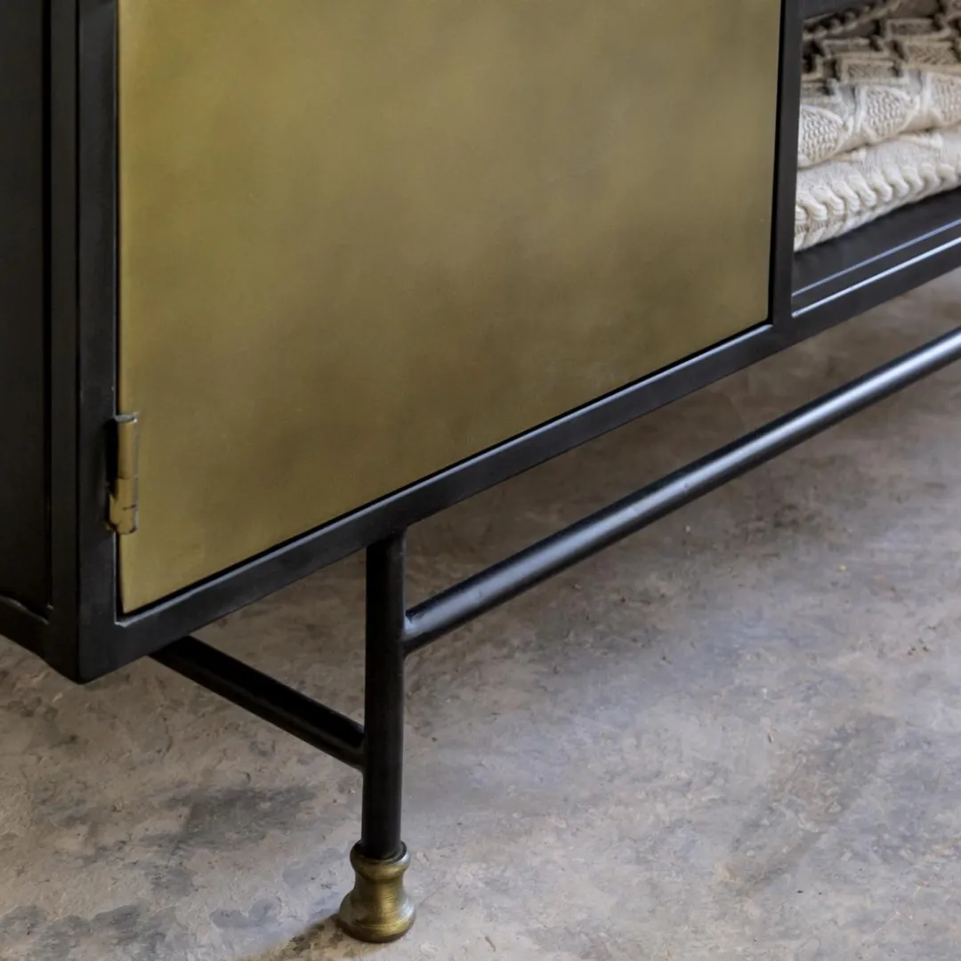 A la fois atypique et tendance, ce meuble TV sort du lot. Osez l’association entre le laiton et le métal noir, duo parfait ! Osez les nuances lumineuses et dorées du laiton. Craquez pour ce piétement bourré de charme en laiton ! Osez et craquez pour cette pépite !