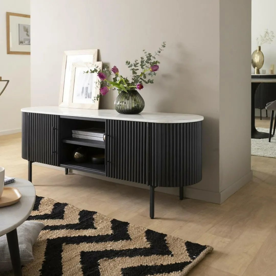 Lorsqu’il s’agit d’aménager un salon, le choix des meubles est primordial. Prenez le temps de trouver le meuble TV idéal, alliant praticité, fonctionnalité et esthétique. Notre meuble TV « Mona » répond à tous ces critères avec son design en métal noir et son plateau en marbre blanc.