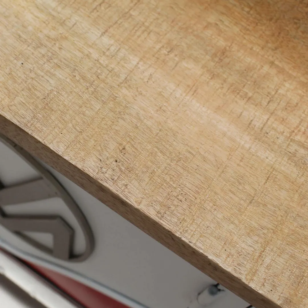 Chaque modèle est unique et présente ses propres caractéristiques. Ces irrégularités affichent volontairement un effet vintage. N’hésitez pas à consulter notre article « Nos collections combi, scooter, vélo » sur notre blog pour plus de détails. Le meuble est fourni avec des tampons à disposer soi-même sous le meuble.