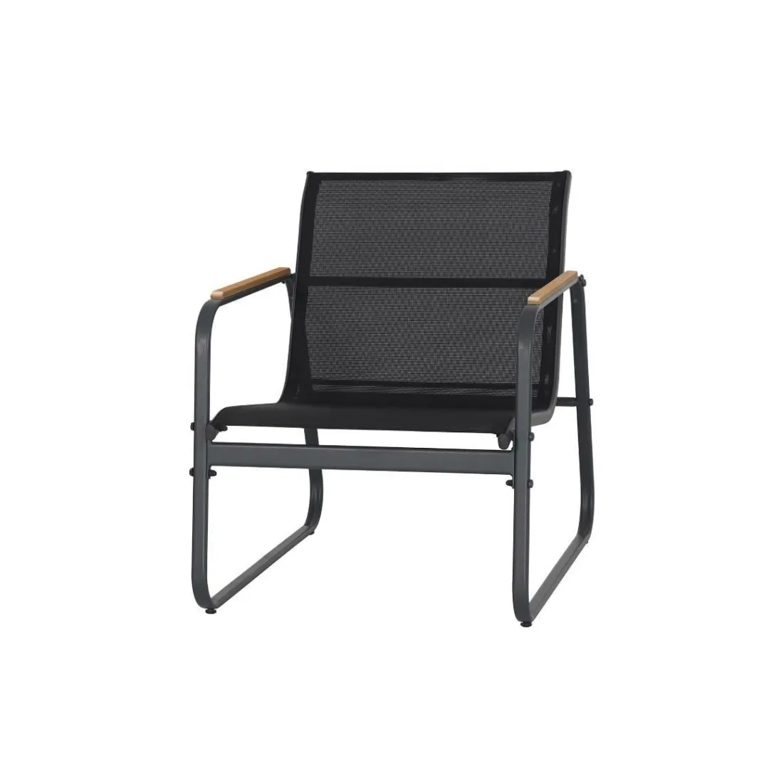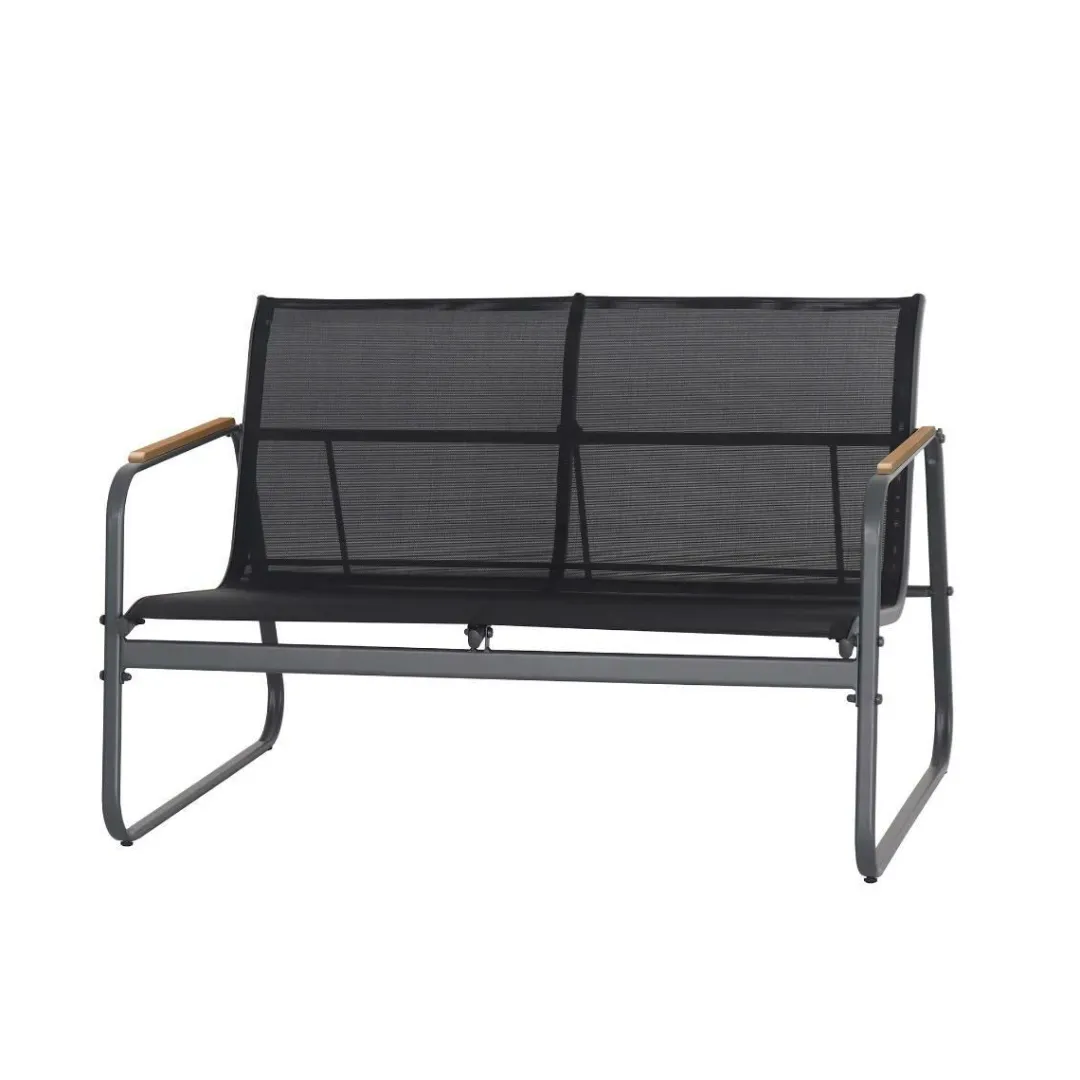 Le petit salon de jardin Zohra offre une touche moderne et élégante avec sa structure en aluminium gris et ses assises en textilène gris, alliant confort et résistance au quotidien.