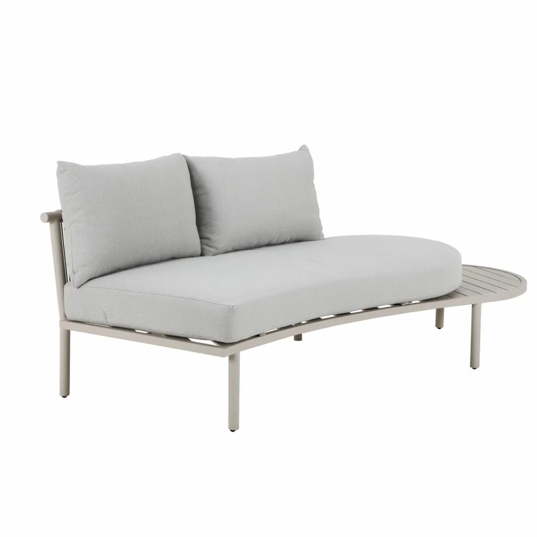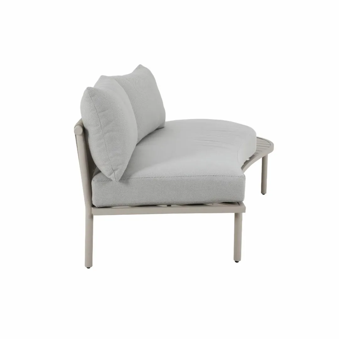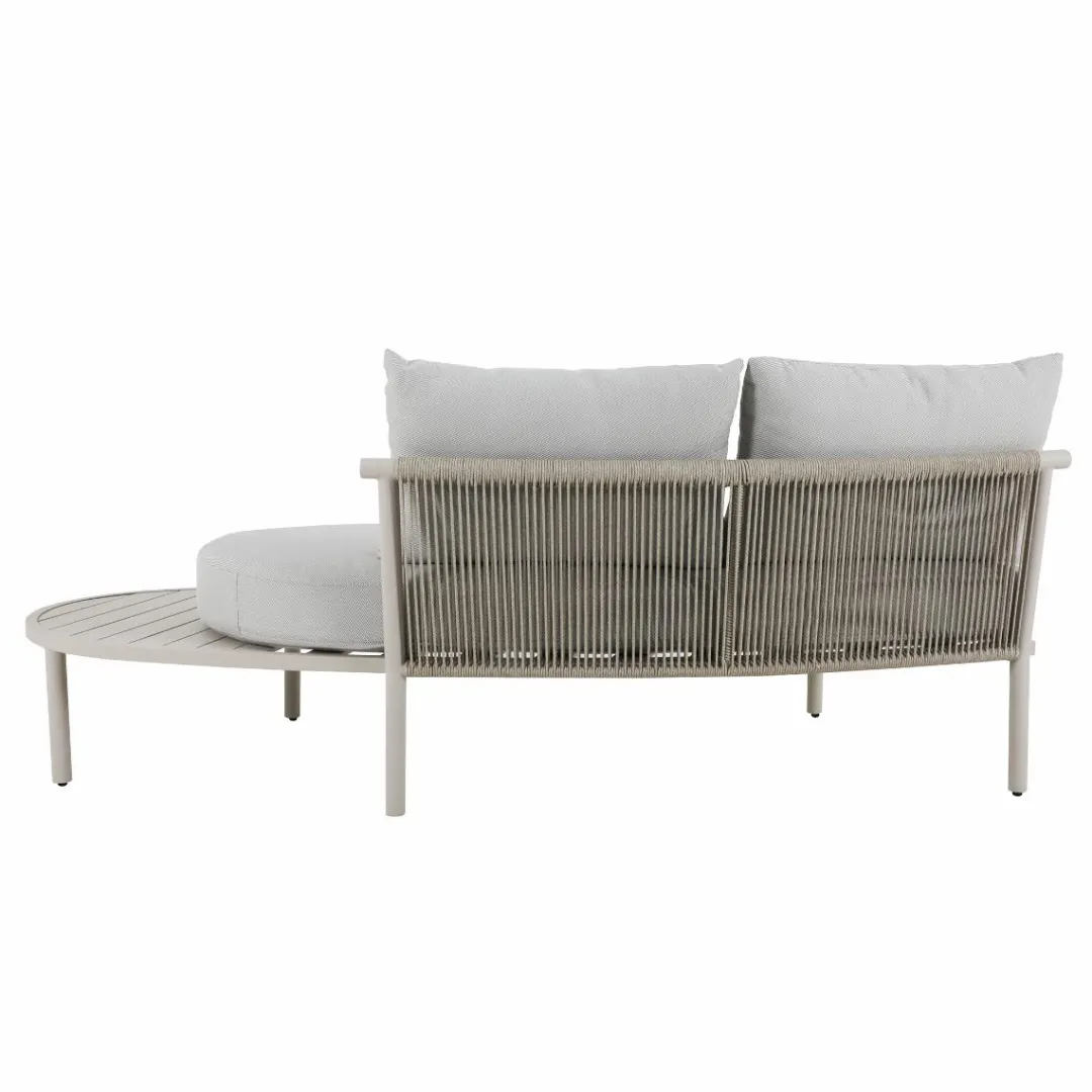 Le salon de jardin Zion allie style et confort avec sa table et son canapé en aluminium taupe, au design en forme organique, parfait pour cette année 2025. Le dossier du canapé en corde ajoute une touche subtile et design, tandis que les coussins offrent un confort optimal pour des moments de détente.