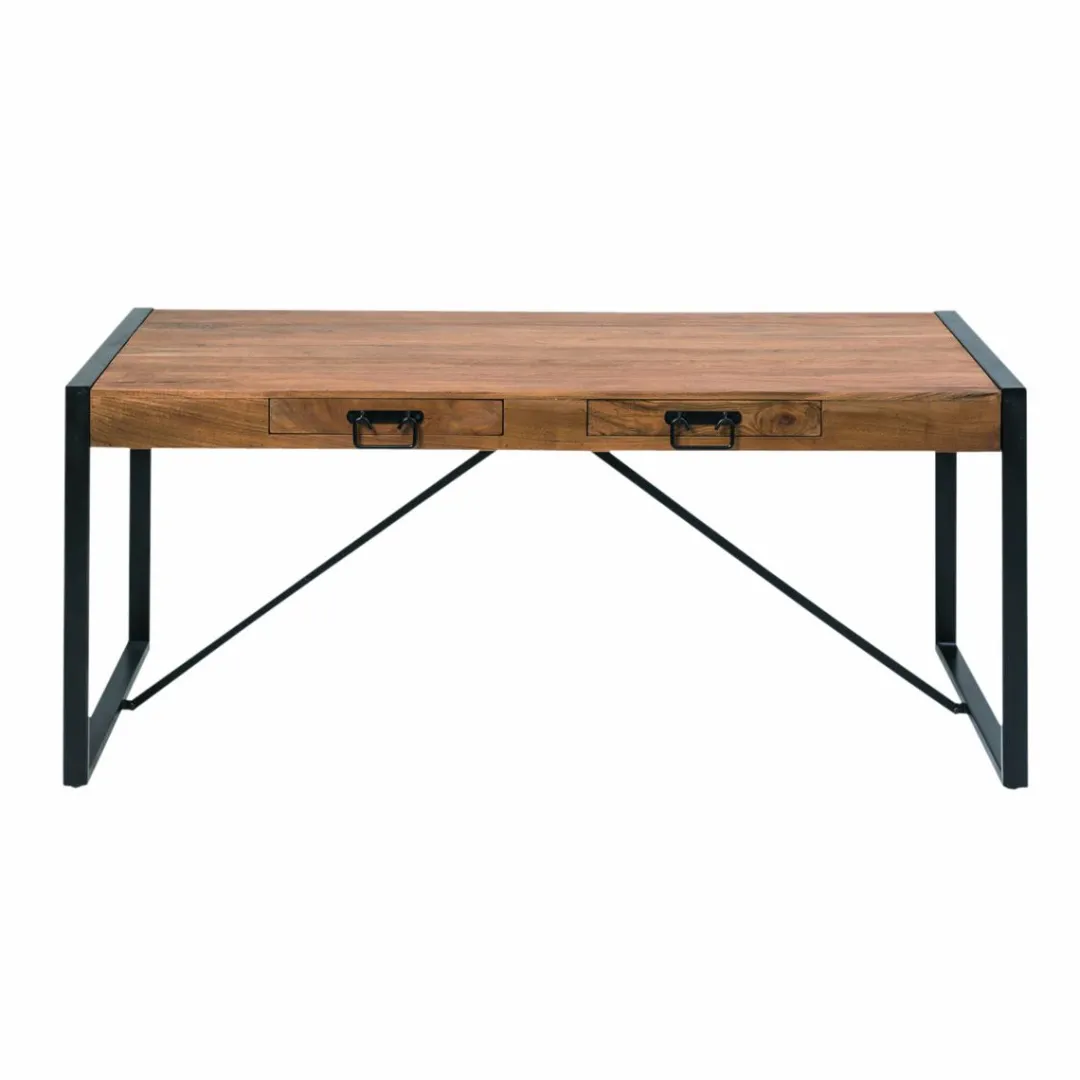 Cette table industrielle fait partie de la collection HAVANA : Vous pourrez aisément la combiner chaises assorties et le buffet, et profiter de tarifs avantageux sur la livraison. Pour information, cette table existe également en manguier et bois coloré.