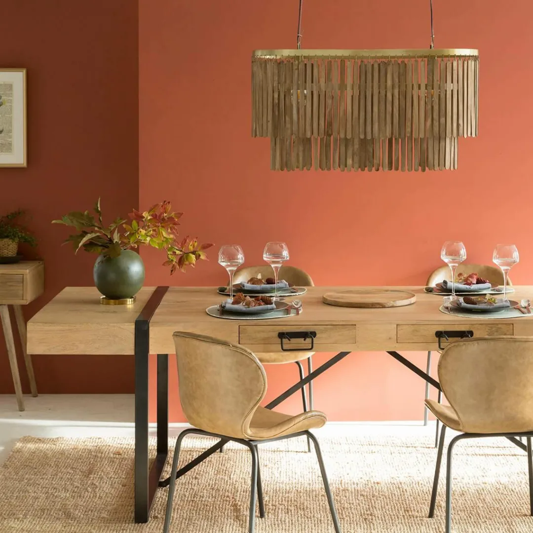En véritable bois massif, cette table apportera des nuances claires et lumineuses grâce à la couleur douce de son bois. Son petit plus? Elle vous propose deux tiroirs sur le côté, à la fois fonctionnelle et design elle est faite pour vous ! Elle saura trouver facilement sa place dans votre intérieur et vous permettra de passer des moments en famille ou entre amis.