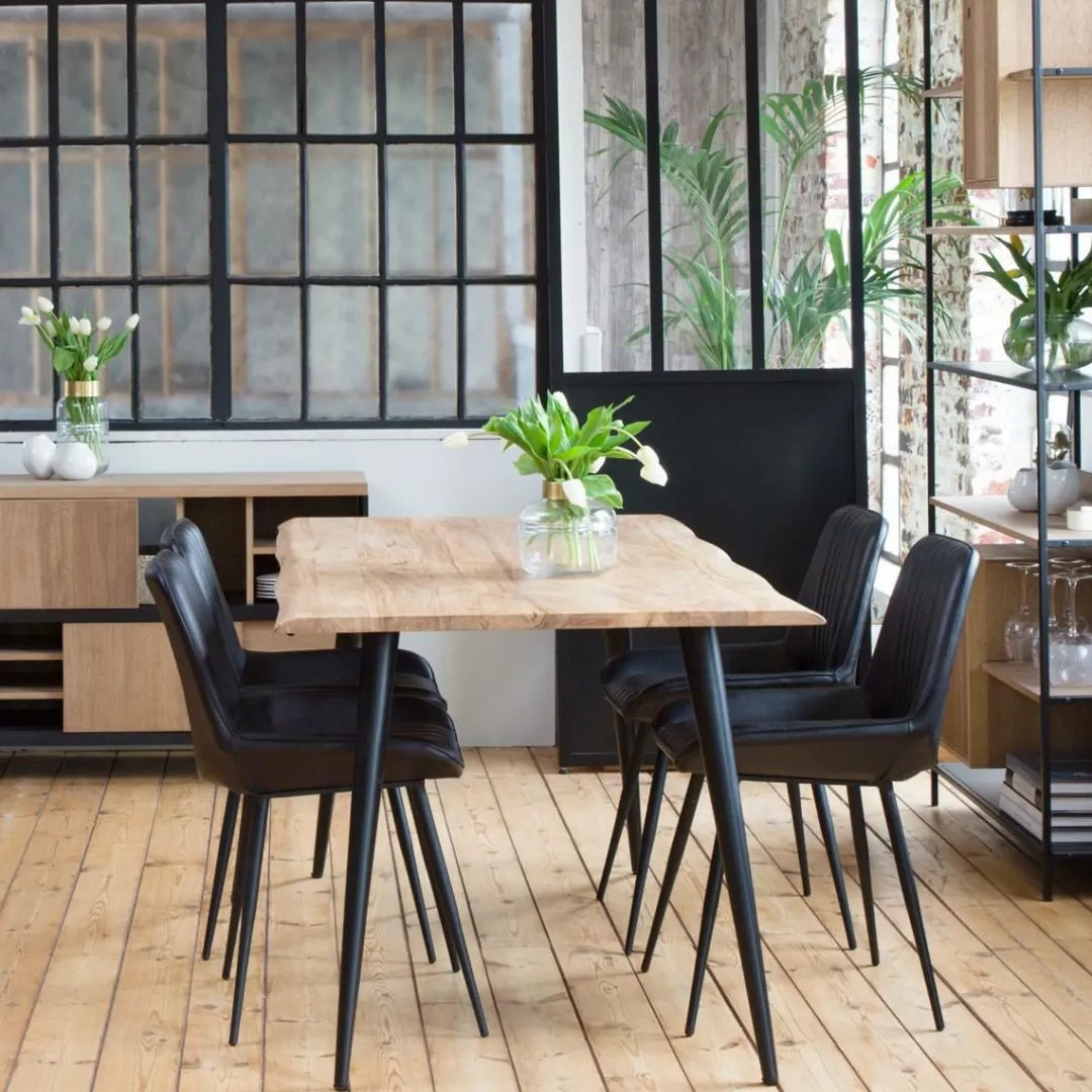 On apprécie son aspect chaleureux grâce aux nuances du bois d’acacia et à ses formes galbées, et on adore la finition très soignée de son piétement compas en métal noir. Cet aspect brut apportera une touche de modernité et une vraie dose de convivialité. Son design galbé est souligné par les irrégularités que l’on retrouve sur les extrémités du plateau. Grâce à ses traits fins et épurés, cette table à manger en bois massif saura apporter une touche de légèreté à votre décoration. Très agréable au toucher, elle fait un sans-faute !