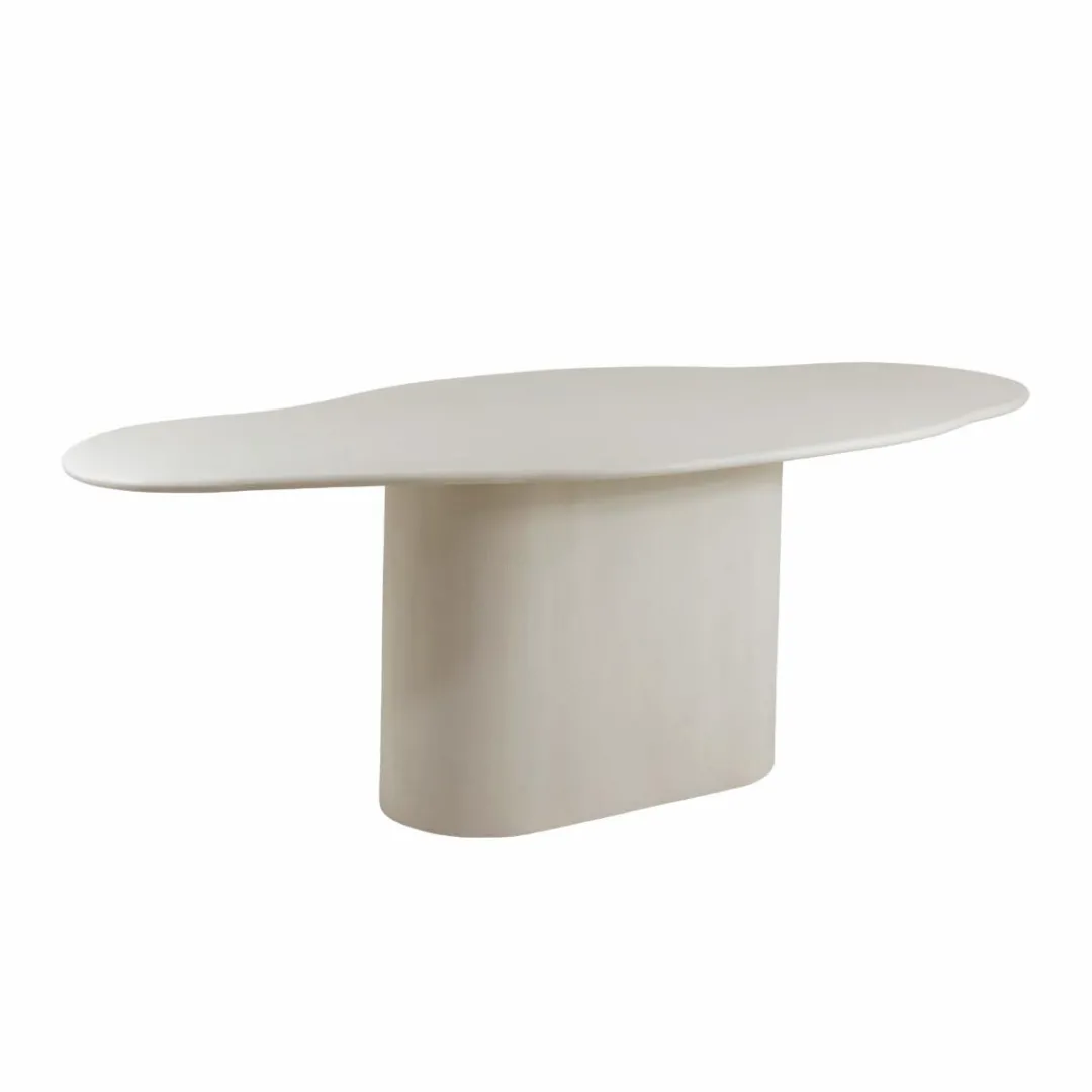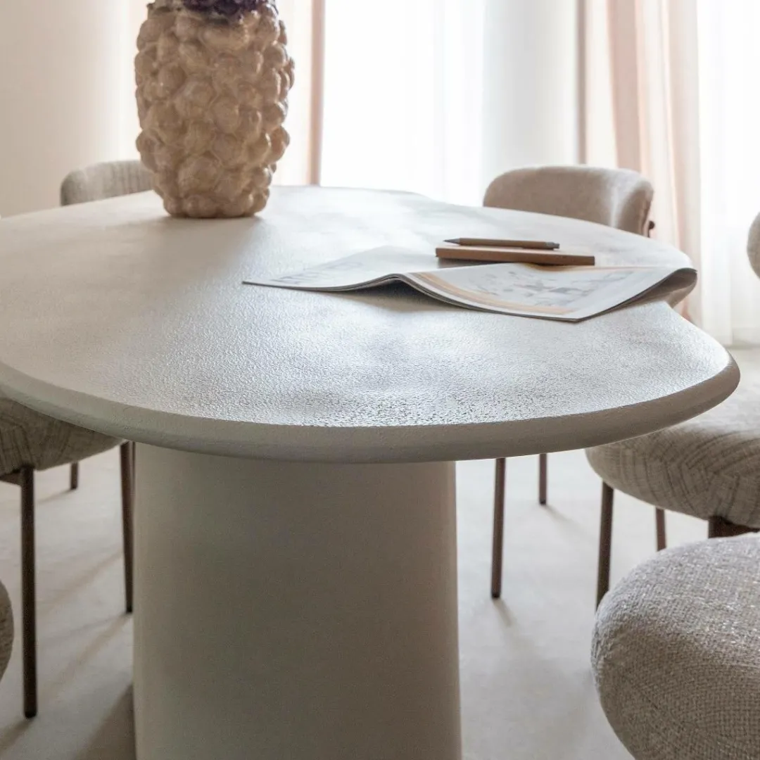 Cette table à manger en MDF avec effet béton blanc séduit par son design contemporain et minimaliste. Son plateau généreux repose sur un pied central massif, offrant à la fois stabilité et élégance. Avec sa finition effet crépi, elle apporte une touche urbaine et moderne qui s’intègre parfaitement aussi bien dans une salle à manger épurée que dans un intérieur plus audacieux.