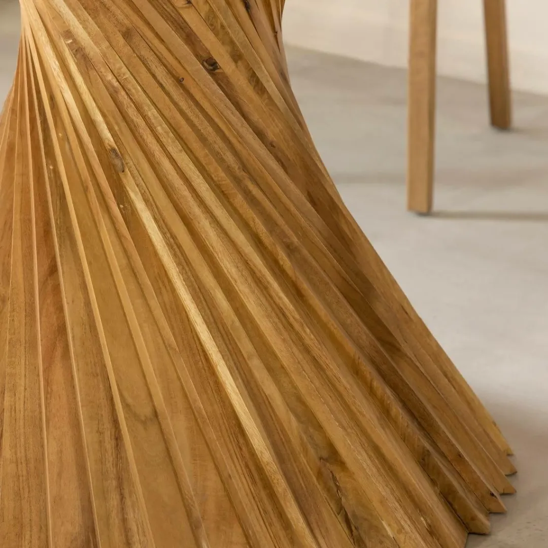 Son piètement sculptural en forme de torsade attire le regard et donne à l’ensemble une allure moderne et originale. La structure, à la fois stable et graphique, apporte une vraie personnalité à la pièce.