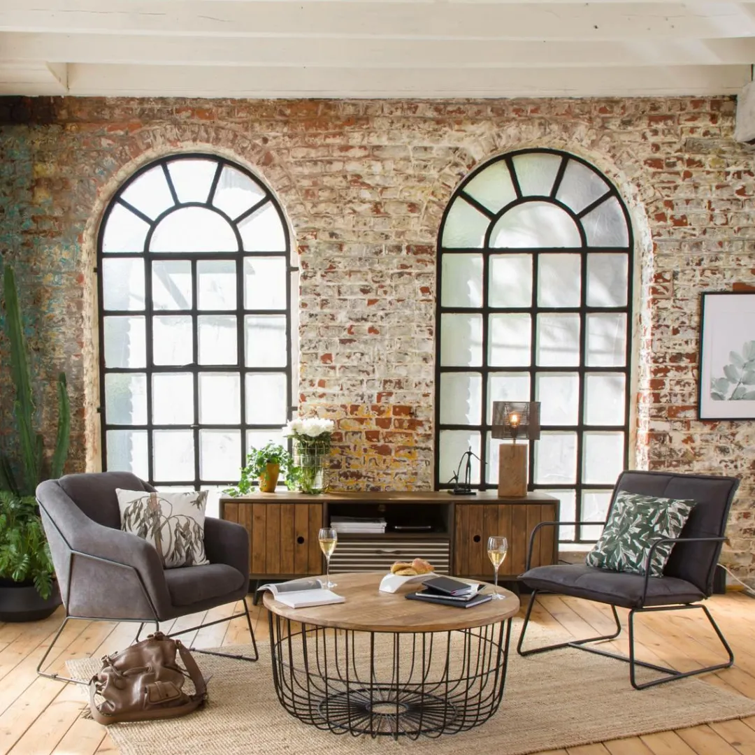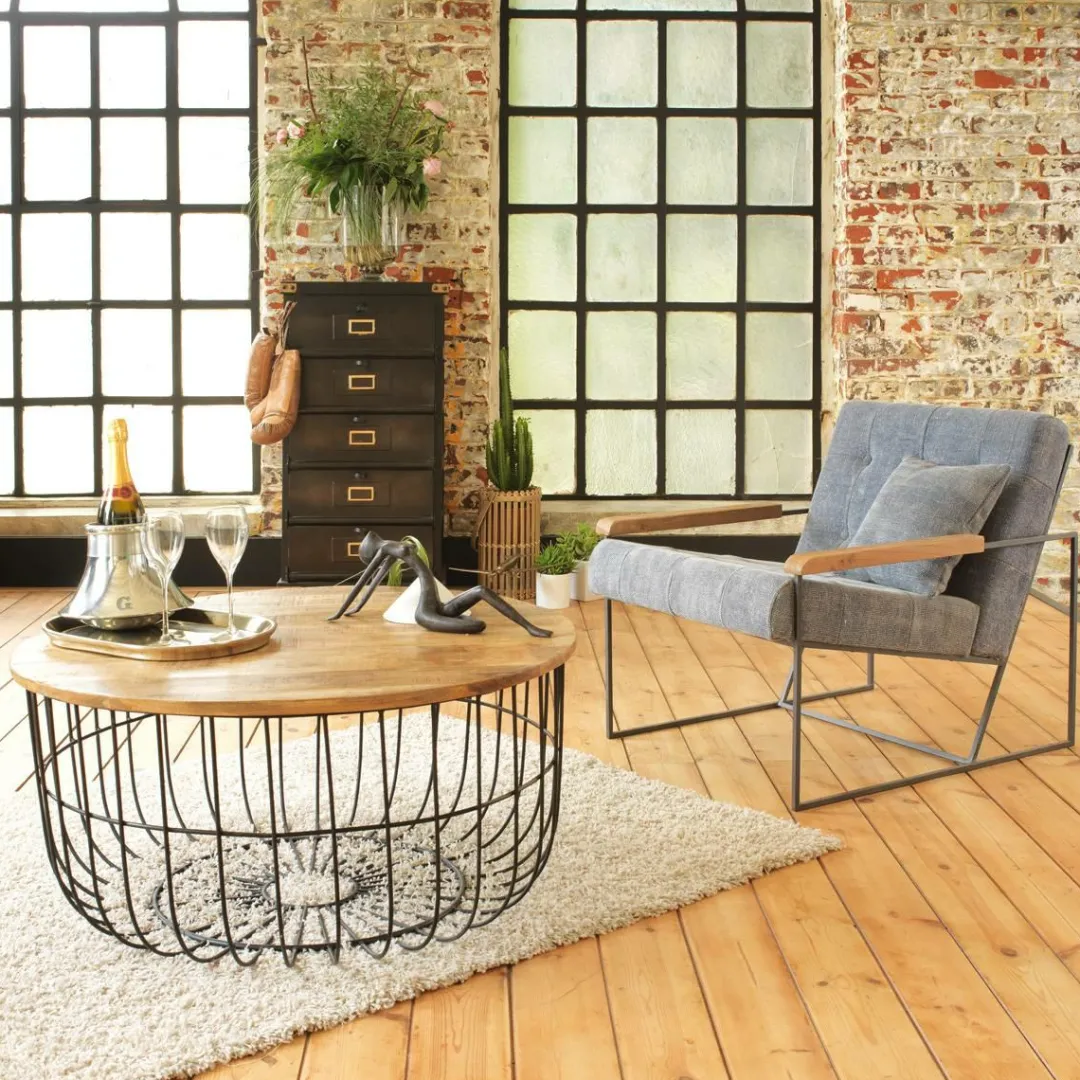 Cette table basse industrielle dispose d’un plateau arrondi en manguier fixé sur le panier (non amovible) pour une plus grande stabilité. Les nuances vives et lumineuses de son bois de manguier en font une table basse dynamique et raffinée ; c’est une valeur sûre !