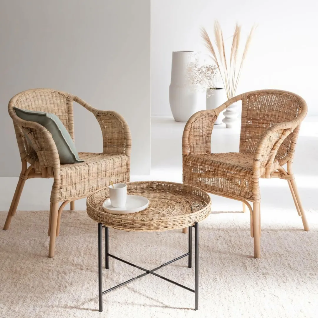 La table basse Julie est la combinaison parfaite du style et de la fonction. Dotée d’un plateau en rotin avec rebord, cette table ronde ajoutera certainement une touche bohème à votre intérieur. Sa base en métal noir est aussi robuste qu’élégante, idéale pour tout espace de vie.