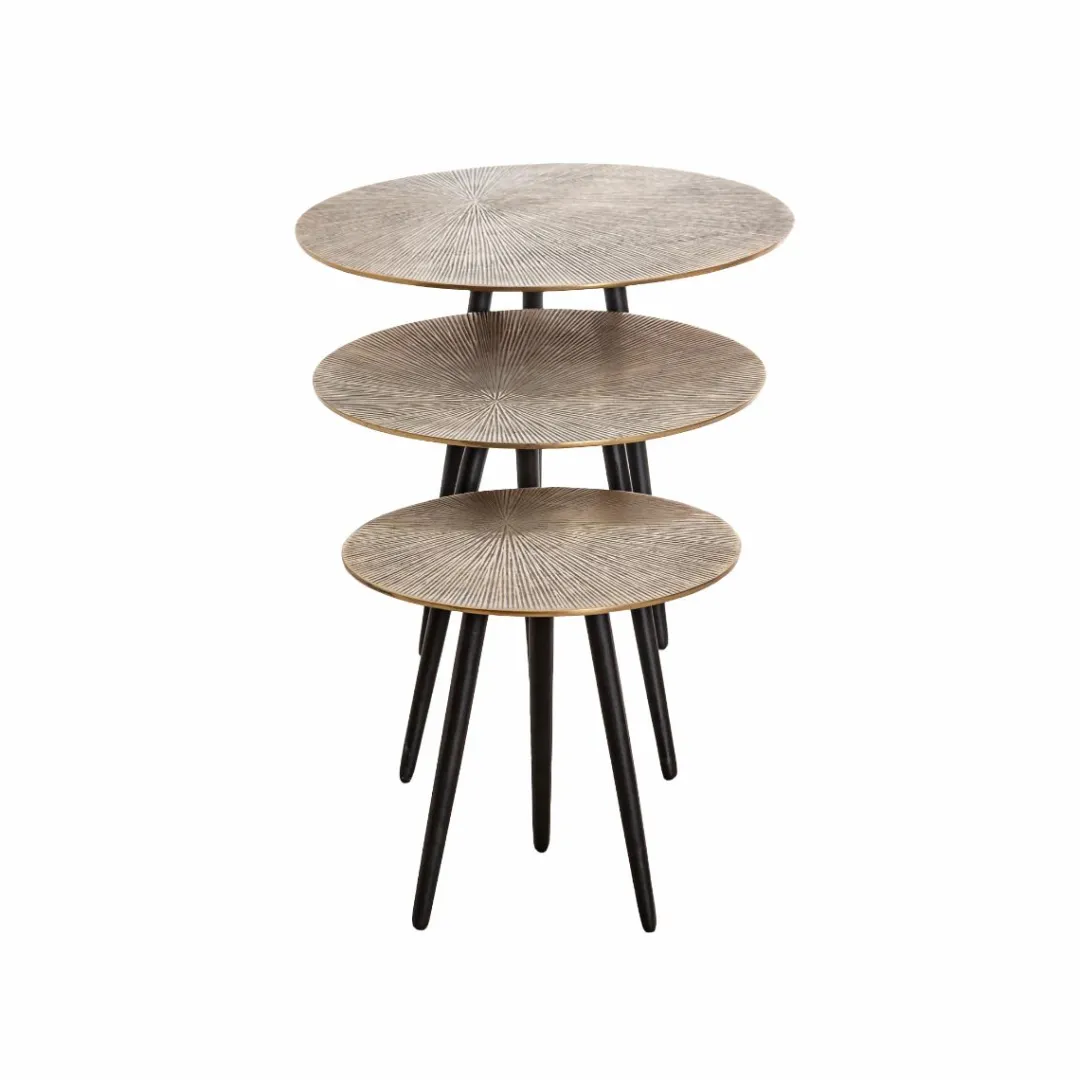Les dimensions totales des trois tables étant de 43x43x40, 40x40x35 et 37.5×37.5×31 – ce qui les rendent incroyablement polyvalentes et faciles à ranger si nécessaire. Elles sont donc idéales pour les espaces qui doivent accueillir des invités ou des groupes de personnes plus nombreux.