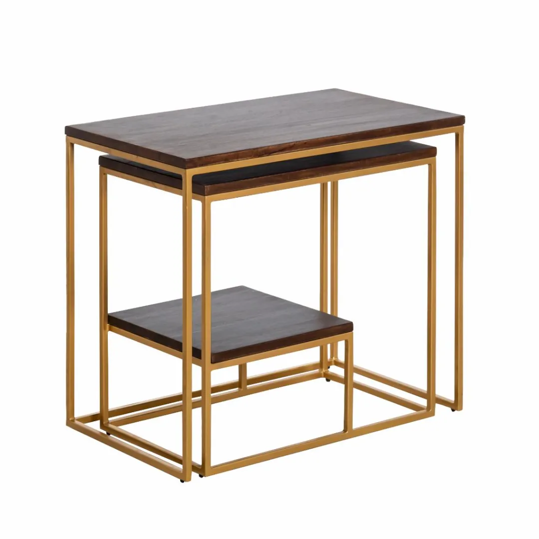 Cet ensemble contient deux tables : une plus grande de 60x35x52 et une plus petite de 50x30x47. Les magnifiques plateaux en bois de manguier sont dotés d’une structure en métal doré exquise, qui ne manquera pas de faire sensation dans n’importe quelle pièce. Transformez n’importe quel espace avec cette combinaison métal-bois moderne et chic de la collection Léon.