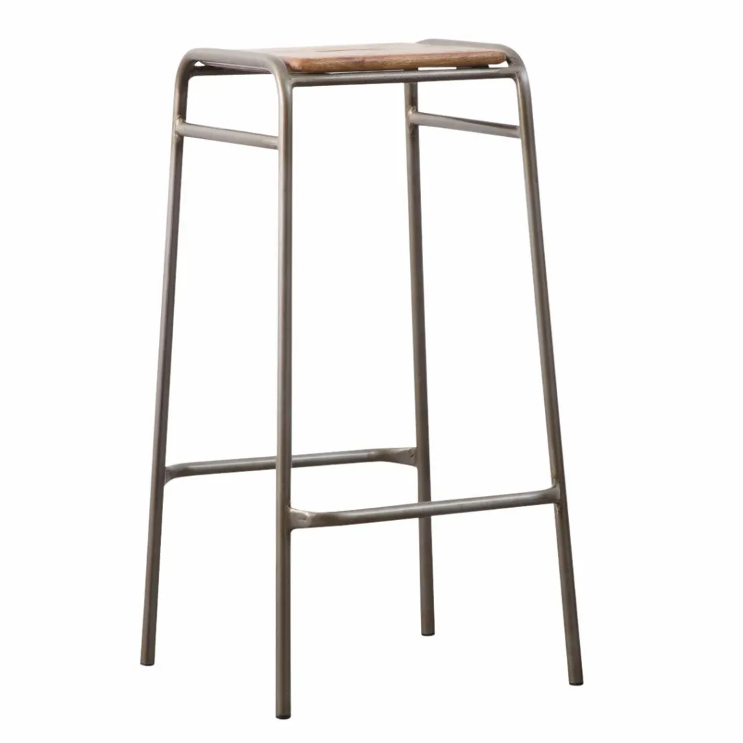 Ce tabouret est doté d’une assise en manguier et d’un piétement en métal gris pouvant tirer vers le bronze. On aime beaucoup les nuances lumineuses de son bois qui contrastent très bien avec le métal. Sa conception simple et épurée est modernisée le design du piétement. Vous profiterez d’un repose pieds de chaque côté qui vous permettra de vous mettre à l’aise.