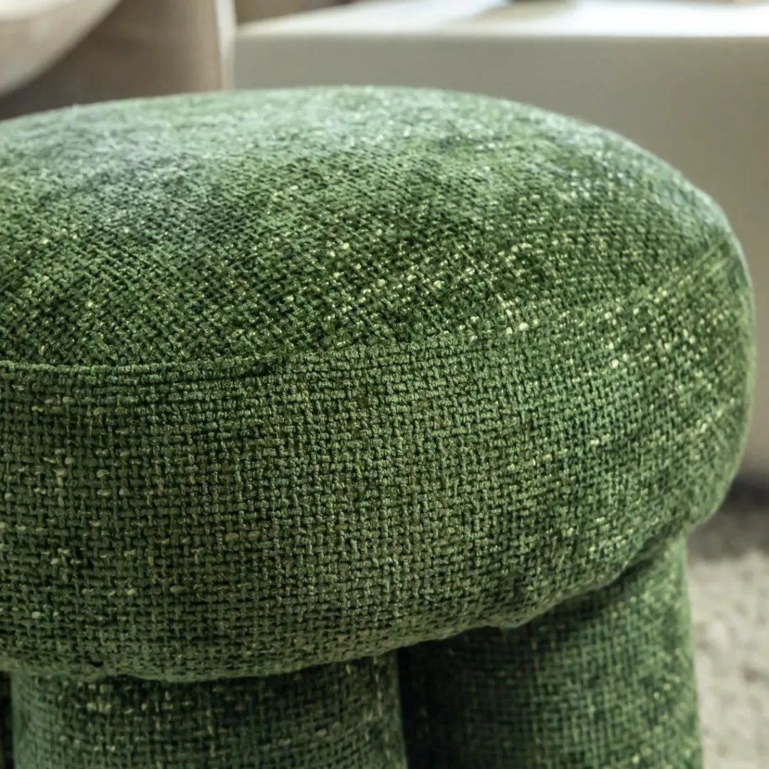 Ce petit tabouret en tissu vert séduit par son design audacieux et sa silhouette arrondie. Son revêtement doux et texturé lui confère un aspect chaleureux et réconfortant, tandis que sa teinte verte apporte une touche tendance à votre intérieur. À la fois original et élégant, il s’adapte aussi bien à un salon moderne qu’à une chambre ou un espace détente.