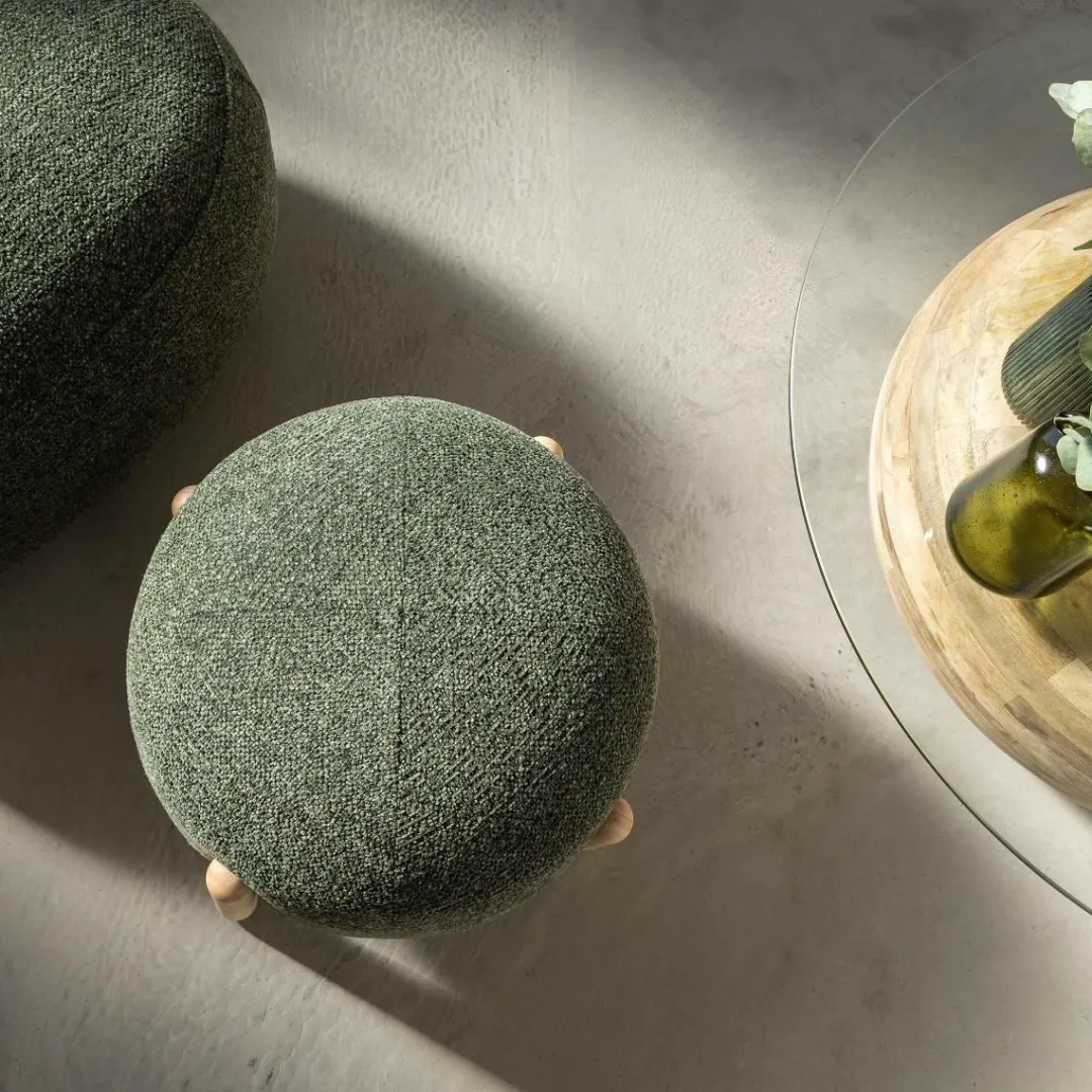 Compact, pratique et stylé : le tabouret Nerio en tissu bouclette vert coche toutes les cases pour devenir l’indispensable de votre intérieur. Avec sa forme ronde, son assise toute douce et ses pieds en bois clair, il apporte une vraie touche contemporaine et chaleureuse à n’importe quelle pièce.