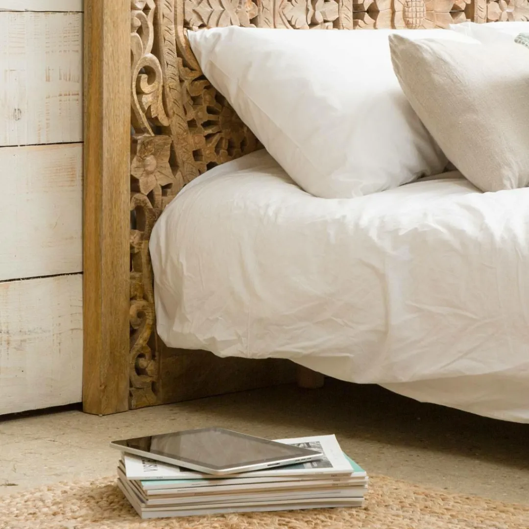 Le bois a été sculpté de manière à nous rappeler de design de la fleur. On aime cette sculpture délicate et raffinée. N’hésitez pas à l’associer avec de beaux chevets et de belles lampes à poser pour une décoration douce et chaleureuse qui saura vous apaiser. Elle est idéale pour une chambre parentale et marquera votre espace d’une touche de zénitude.