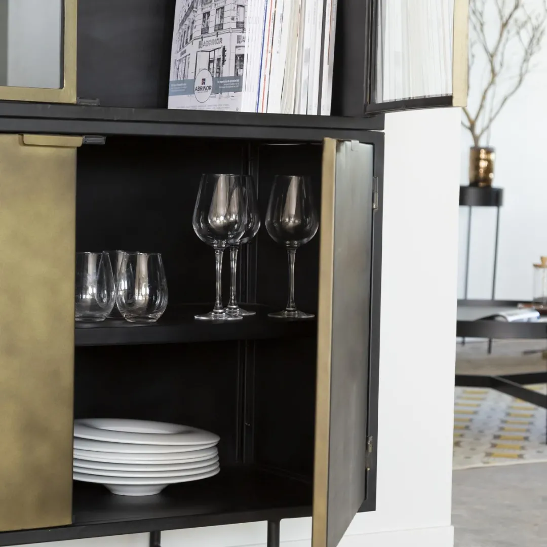 A vous qui rêviez d’un vaisselier au style industriel, nous avons ce qu’il vous faut. A la fois atypique et tendance, ce meuble trouvera sa place dans votre intérieur au style brut et tranché. Il propose un design très actuel en alliant le laiton qu’on ne présente plus et le métal noir qu’on adore encore et encore!