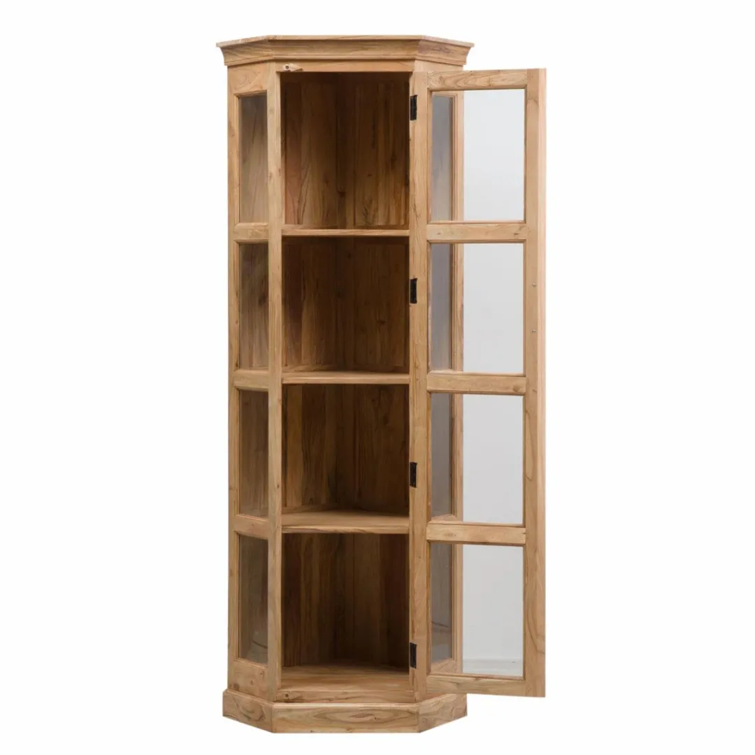 Ce buffet d’angle vous propose une porte en verre avec une poignée en métal noir. On aime particulièrement les détails du meuble comme ses loquets en bois pour fermer la porte par exemple. Il a été réalisé à partir de matériaux de qualité, à savoir du bois d’acacia. Connu pour sa solidité, il vous apportera la robustesse que vous recherchez. On aime la transparence de ses portes qui vous permettront d’exposer vos plus beaux objets de déco ou vous plus belles collections de livres.