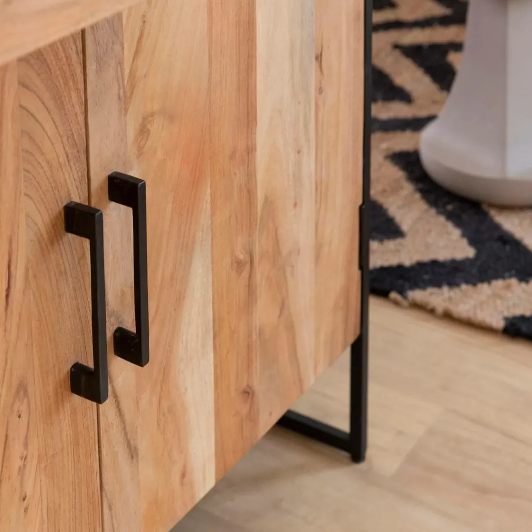 Cette vitrine est conçue en bois d’acacia et métal noir.