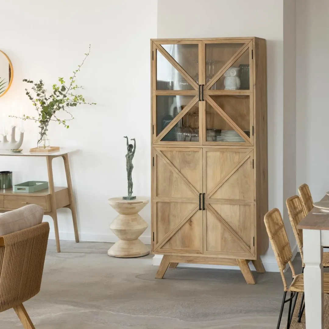La Vitrine Thalia incarne l’élégance et la fonctionnalité dans un design contemporain qui rehaussera le style de votre espace de vie. Fabriquée en bois de manguier de haute qualité et dotée de en verre, elle offre un moyen élégant d’exposer vos objets précieux tout en les protégeant de la poussière et des dommages.