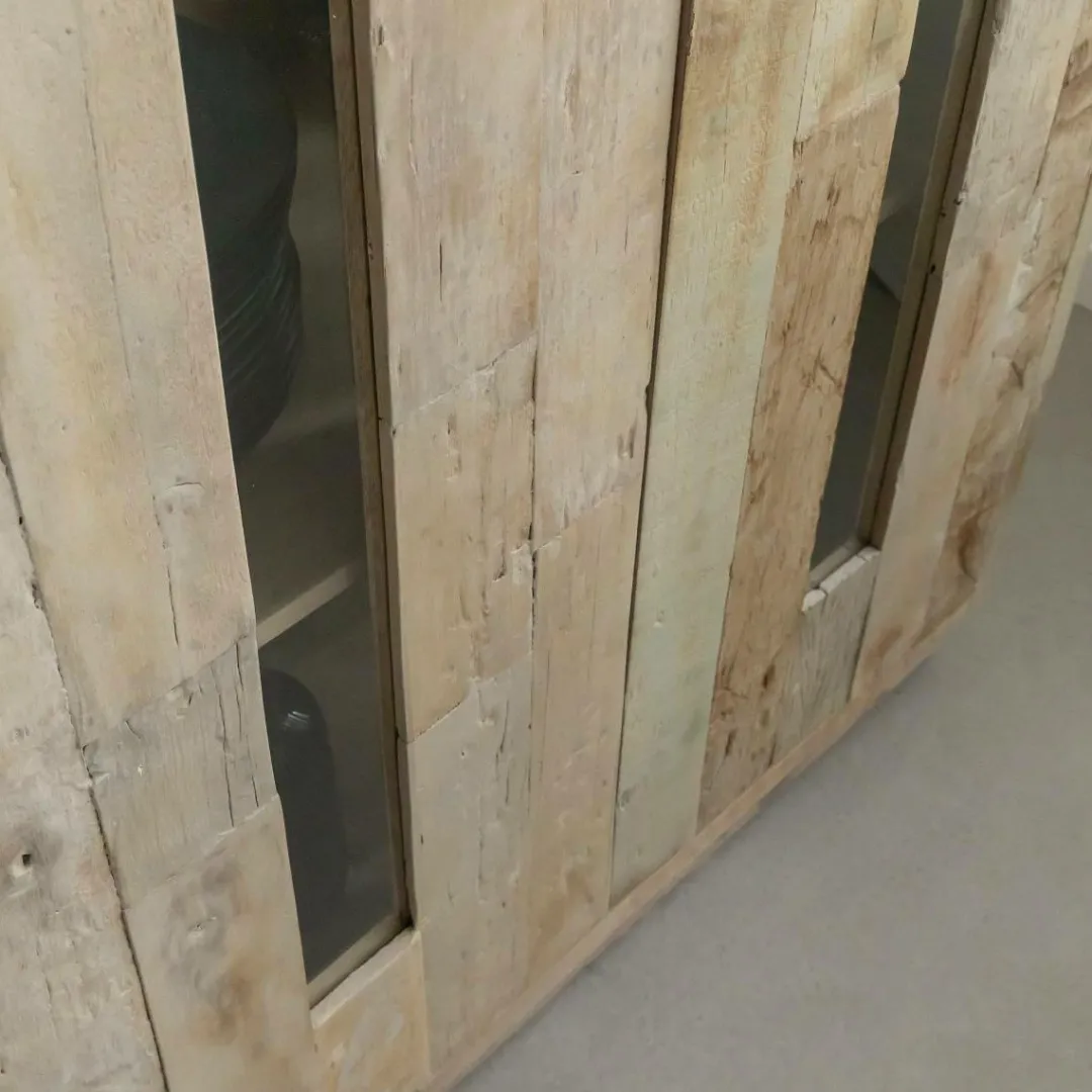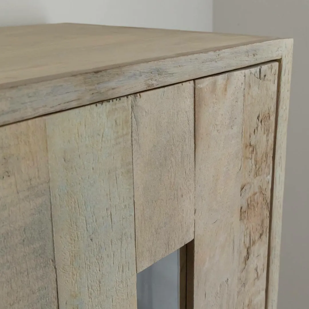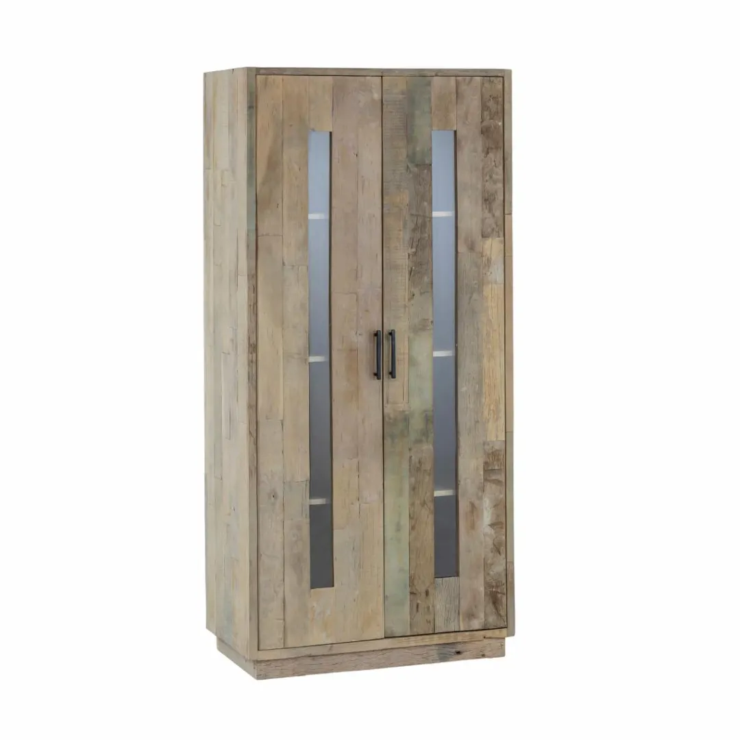 Cette vitrine associe charme authentique et élégance contemporaine grâce à son mélange de bois de manguier et de bois recyclé. Son design met en valeur les nuances du bois, soulignées par des lignes épurées et rehaussées de deux portes vitrées qui laissent entrevoir vos objets. Les poignées métalliques noires viennent apporter une touche de contraste subtile, renforçant son allure moderne tout en respectant l’esprit brut du bois.